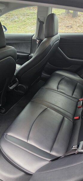 - Front seats and rear bench finished in Tesla’s synthetic (vegan) upholstery material. Seat comfort and adjustment features vary with factory packages, but the standard layout includes practical ergonomics and supportive bolstering for everyday driving.